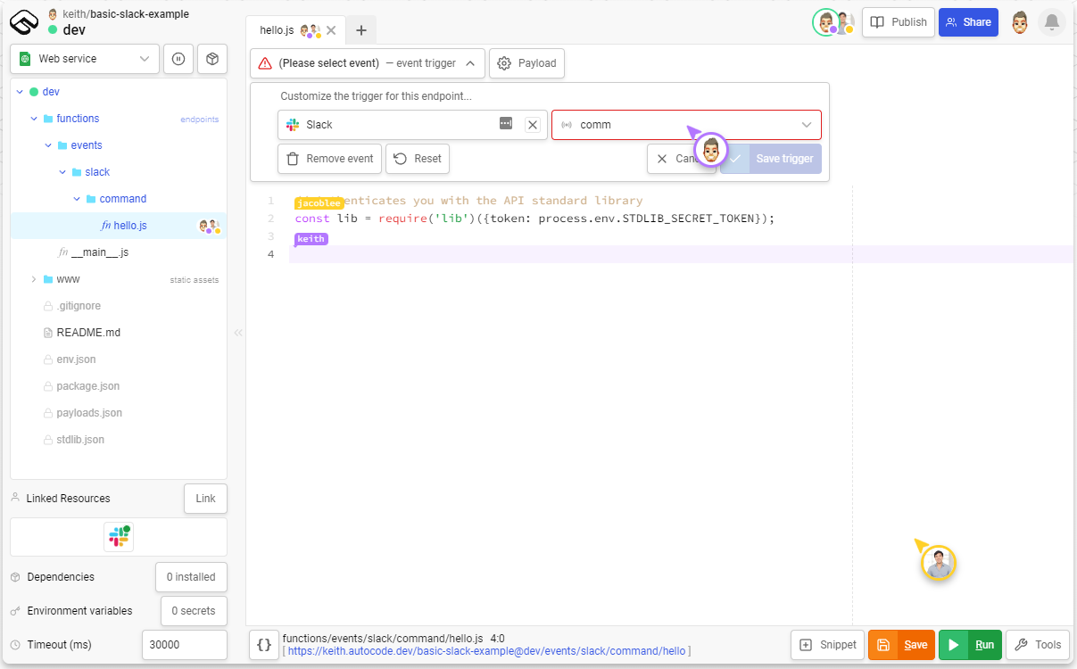 Autocode is a toolkit for connecting apps and APIs that allows users to build and host Node.js endpoints in seconds. It provides an in-browser IDE, an API library, and authentication to popular apps. Users can publish their own apps and snippets, and collaborate with others in realtime. Autocode also supports webhooks, bots, and API integrations, and provides instant endpoints for these services.