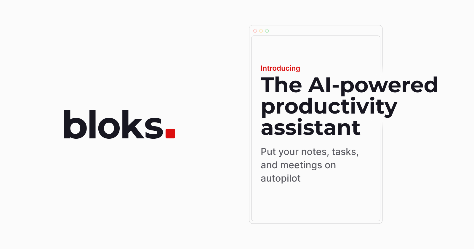 Bloks is an AI-powered productivity assistant that helps users capture and organize notes, tasks, and meetings. It can transcribe conversations from Zoom, MS Teams, Google Meet, Slack, or Webex and auto-generate meeting notes and action items. Bloks also provides users with a high-level overview of everything on their plate, and can draft emails, messages, tweets, or other documents. It works on macOS, iOS, Android, and Google Chrome, and keeps notes safe with enterprise-grade encryption.