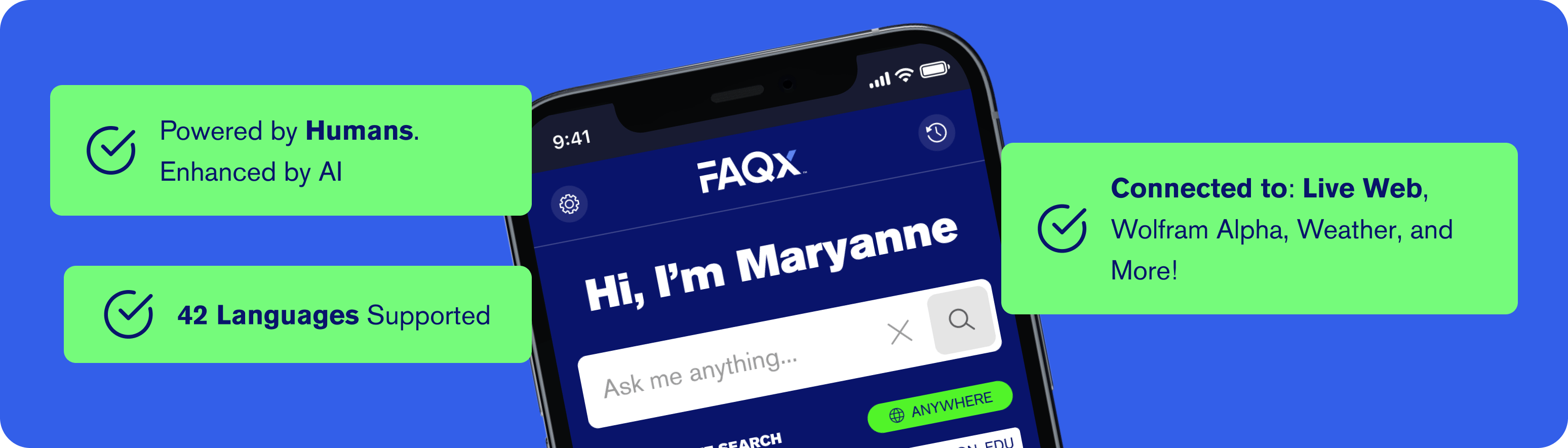 FAQx is a search tool that provides users with access to thousands of questions and factual answers on topics such as general, education, health & wellness, legal and government. The tool uses context filters to provide users with more relevant results, as well as 300K+ human-verified facts. The app also provides users with access to local directories, allowing them to find answers to their questions quickly.