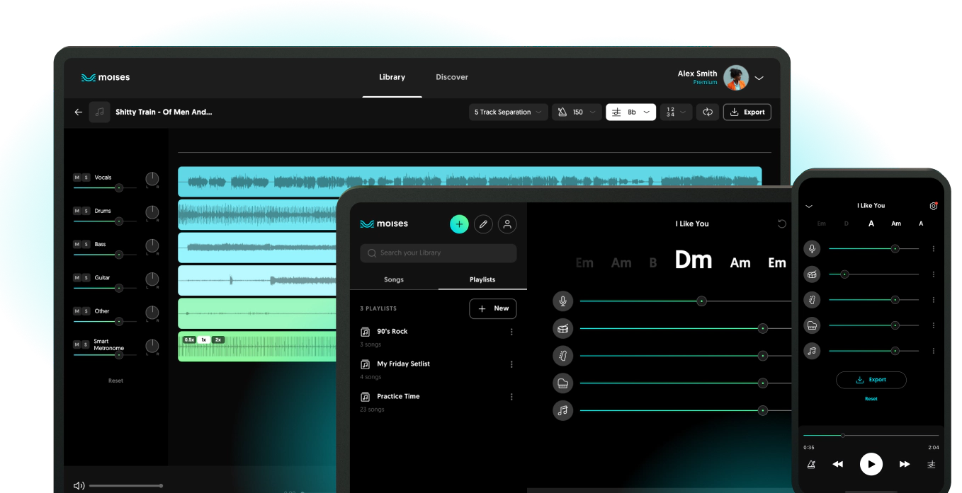 Moises is an AI-powered app that allows musicians to play with their favorite artists in any key and at any speed. It can remove vocals and instruments from songs, adjust the speed, change the pitch, enable metronome counts, and detect chords in real time. It also allows users to control and change the key with one click and shift the pitch to meet their vocal range.