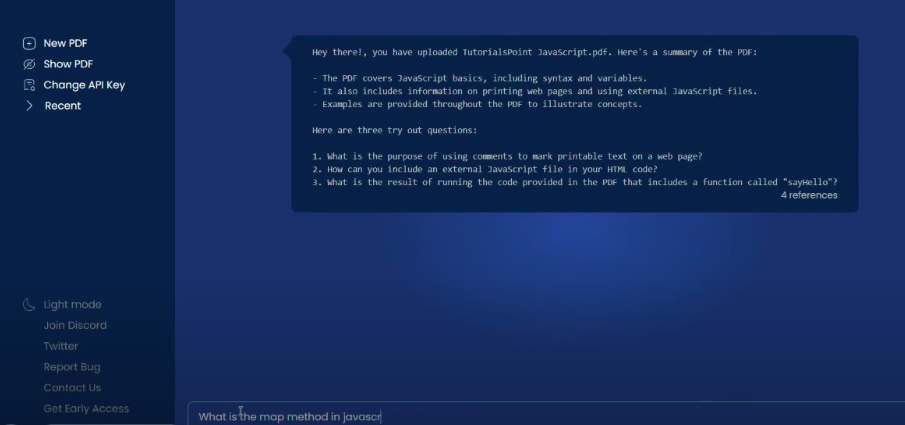 PDFGPT tool where you provide your own openai API key that you use to upload PDF files and chat with it. It also provides a demo video and Discord link to join for more information. The tool can be used for free but for books with more than 1000 pages and business purposes, it is recommended to contact the team.
