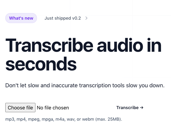transkribieren toolprovides fast and accurate audio transcription services, allowing users to quickly and easily transcribe audio files in formats such as mp3, mp4, mpeg, mpga, m4a, wav, or webm (max. 25MB).