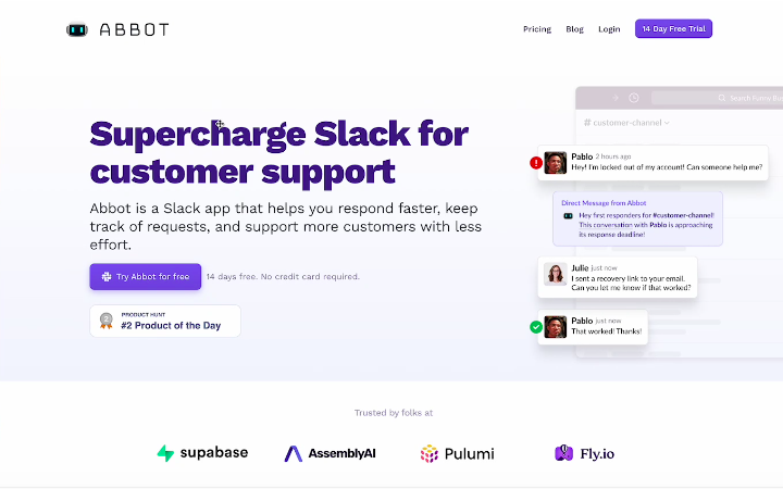 Abbot is a programmable smart assistant designed to help customer success teams. It integrates with popular ticketing systems and can be trained on customer documentation. It monitors conversations in support channels and provides automatic summarization and suggested next steps. Abbot also offers activity dashboards and insights, and can be used to run automations from Slack. It is SOC 2 compliant and offers priority support, early access program, AI-powered documentation search, and dedicated account management.