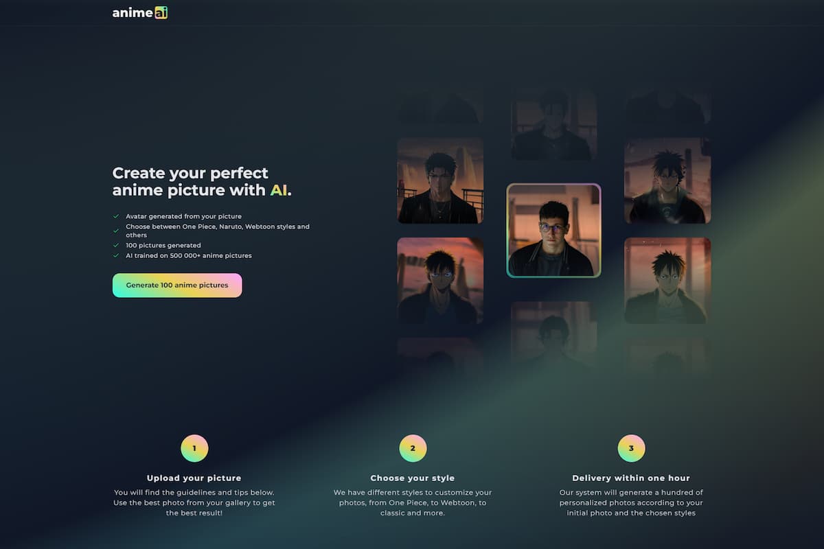 Anime AI is an AI-based photo generator that allows you to create your perfect anime avatar with AI. It has a selection of styles to choose from, including One Piece, Naruto, Webtoon, and more. It will generate 100 personalized photos based on your initial photo and the chosen styles. It uses powerful GPUs to generate the photos and the original photo is stored in France, in compliance with GDPR laws. The generated photos are stored for an unlimited time and the size of the generated photos is currently 512px by 512px.