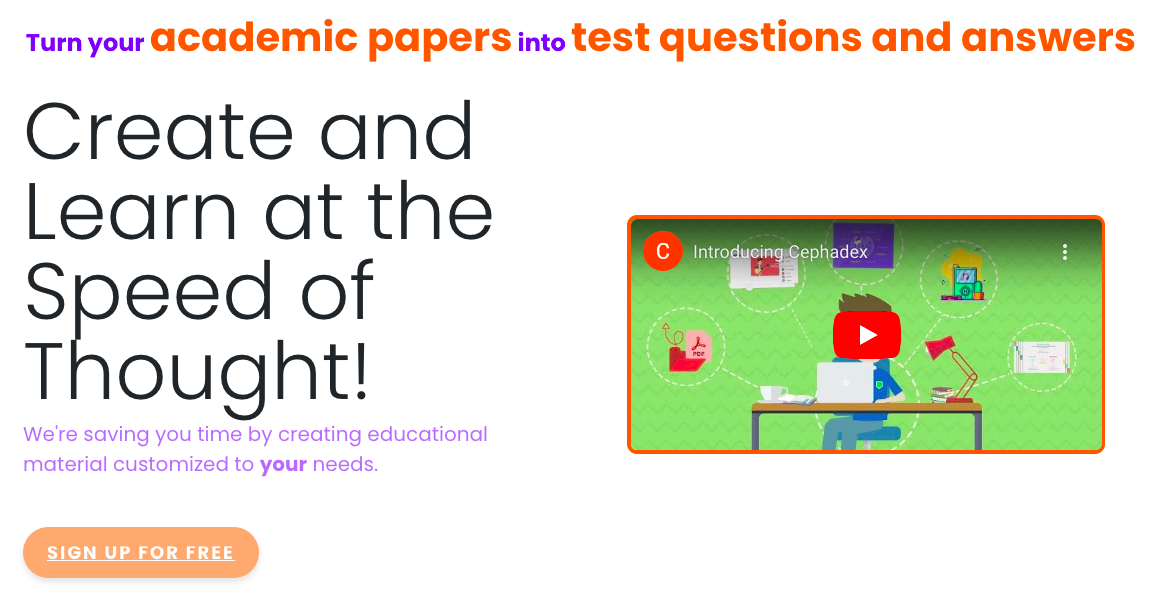 Cephadex is a free learning tool that allows users to create custom decks, worksheets, and tests from a variety of inputs such as pdfs, ppts, docs, mp3s, wikipedia pages, or youtube videos. It also features a spaced repetition system and other study tools to help users master their subjects and achieve academic success. Additionally, users can join a vibrant community that offers educational games, challenges, and the ability to track progress and set goals.