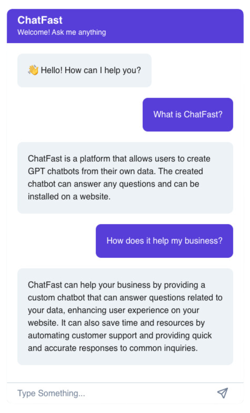 ChatFast is a platform that allows users to create GPT chatbots from their own data. The chatbot can answer questions about the data and can be embedded on a website. The platform supports plain text, PDFs, website URLs, scanned PDFs, and images with text. It can understand and help in 50+ different languages. API access is available for paid plans.
