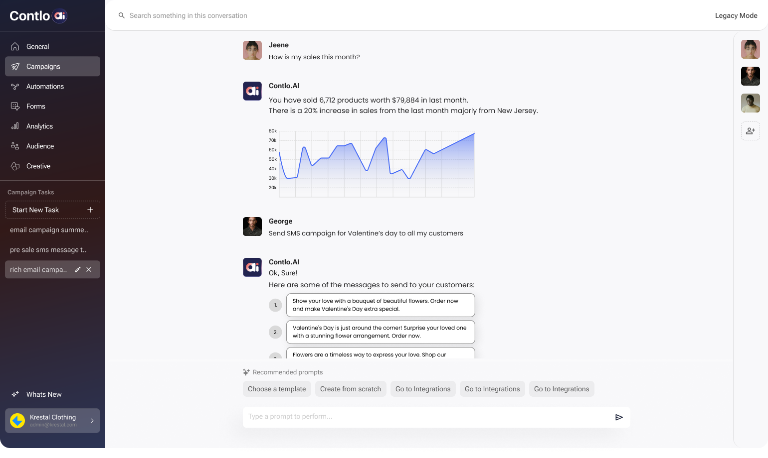 Contlo.AI is a personal AI marketer that provides end-to-end campaign management. It helps users create signup forms, generate subject lines, headers and CTAs, create text copies for SMS and email, schedule emails and SMS campaigns, create customer segments in plain English, upload and manage manual lists, manage social media posts, set goals and conversion targets, create and manage paid ads on FB and Google, write SEO-optimized blogs and marketing copies, and get business insights. It also allows users to experience the future of marketing by designing and sending an email campaign in just 5 minutes.