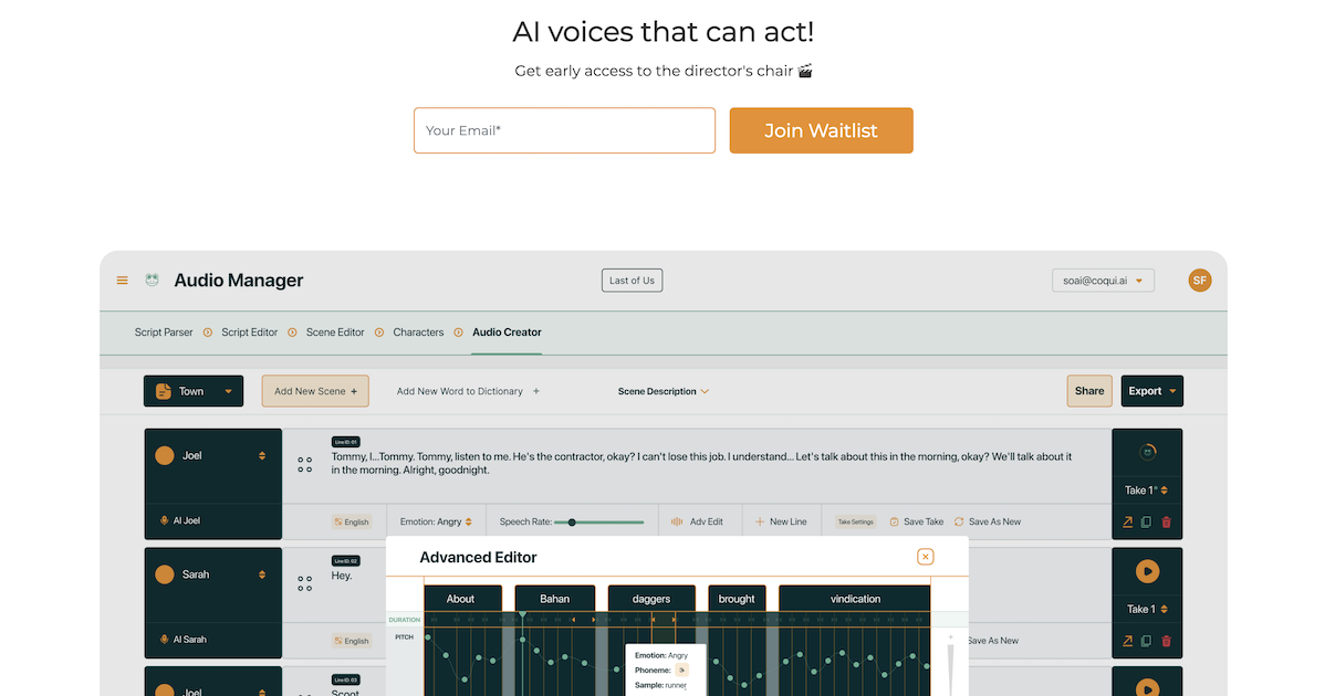 Coqui Studio is an AI voice directing platform that allows users to generate, clone, and control AI voices for video games, post-production, dubbing and more. It features voice cloning, generative AI voices, advanced editors, project management, and timeline editors to help users streamline their workflow. Coqui Studio also offers 30 minutes of free synthesis time.
