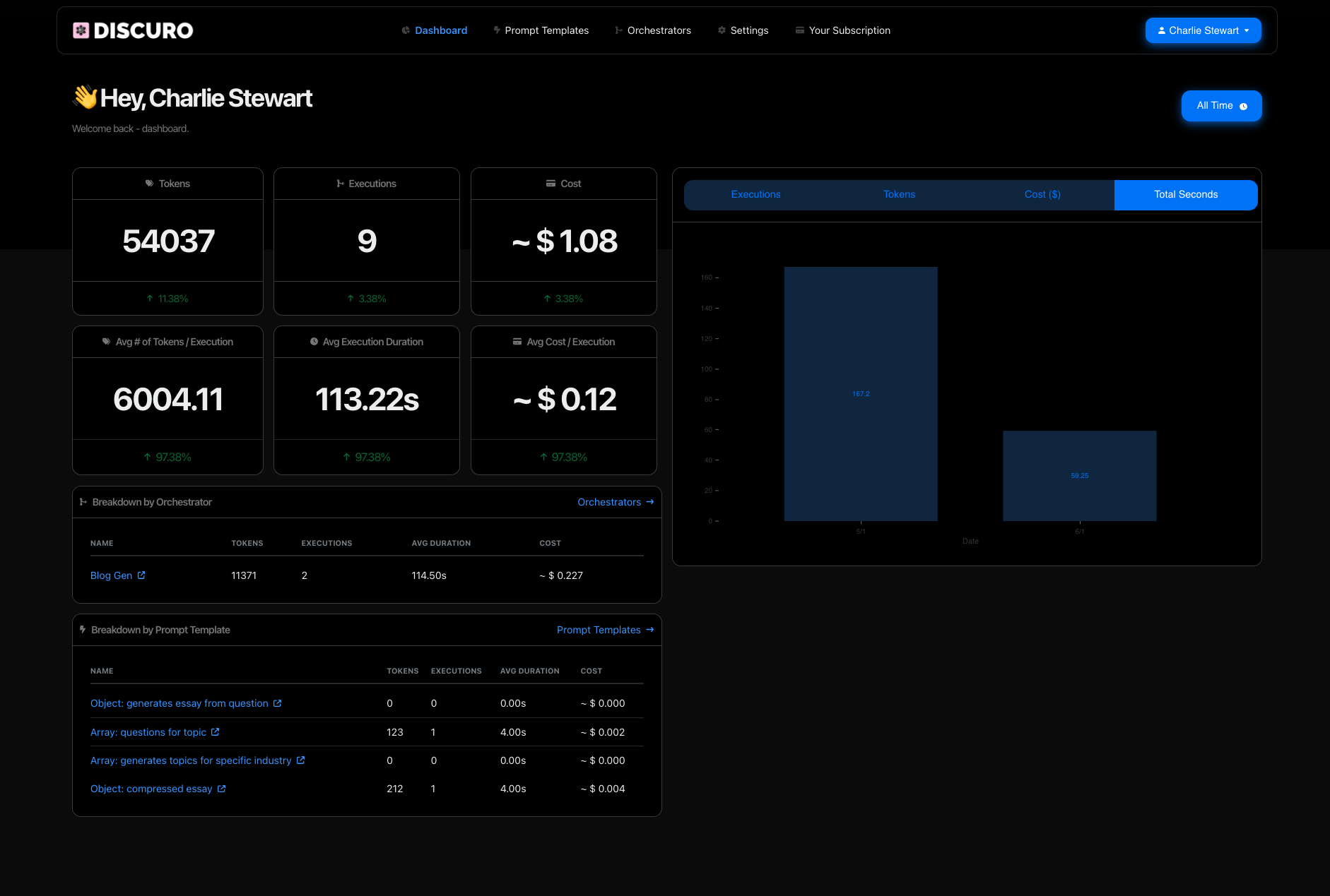 Discuro is an all-in-one platform for developers looking to quickly and easily build and test complex AI work-flows. With Discuro, users can define their work-flows in an easy-to-use UI, and then make one API call to execute their work-flows. Discuro also enables users to monitor AI usage across work-flows and add meta-data to build bigger data-sets. This allows users to better understand how their customers are using AI apps and find opportunities for optimisation.