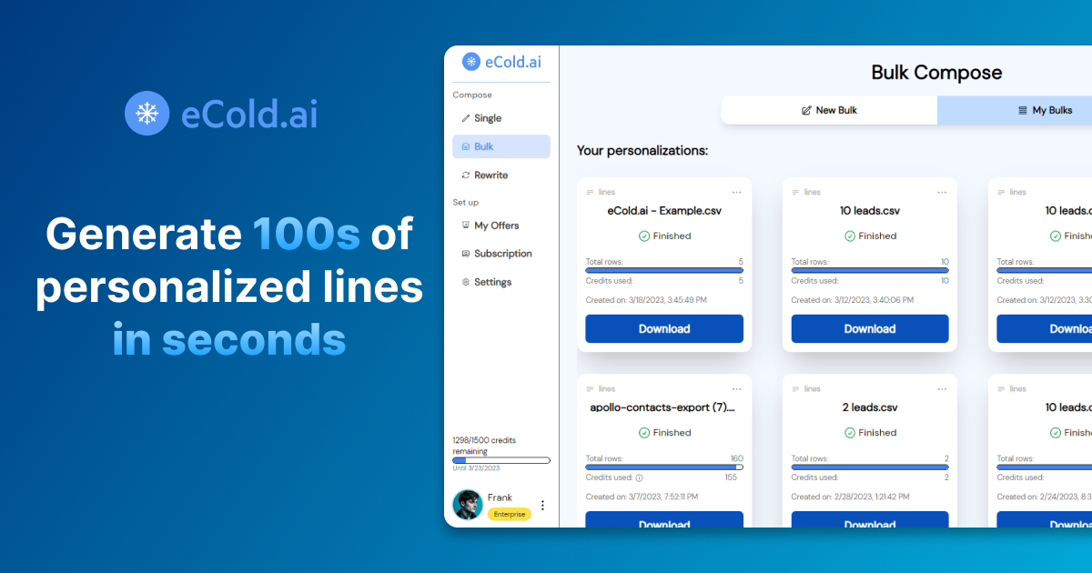 eCold.ai is an AI powered tool for automating cold email personalization. It allows users to quickly generate 100s of personalized lines in seconds and integrates with the most popular cold email tools. It is 6X cheaper than hiring a VA and provides increased reply rates.