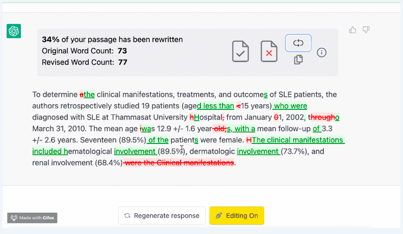 editGPT allows users to proofread, edit, and track changes to their content in chatGPT. It is available as an add-on to the Firefox and Chrome browser.
