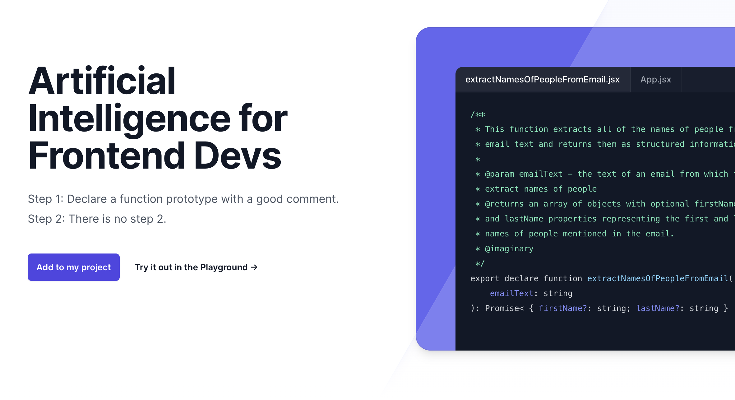Imaginary Programming is a TypeScript-based tool that uses OpenAI's GPT engine to help frontend developers add artificial intelligence to their projects. It allows developers to define a function prototype in TypeScript without an implementation, while GPT takes care of the rest. It can be used to generate useful titles and text, classify data using human-like intelligence, and extract structured data out of messy, unstructured language. Developers can also try out Imaginary Programming in the online Playground to experiment with its features.