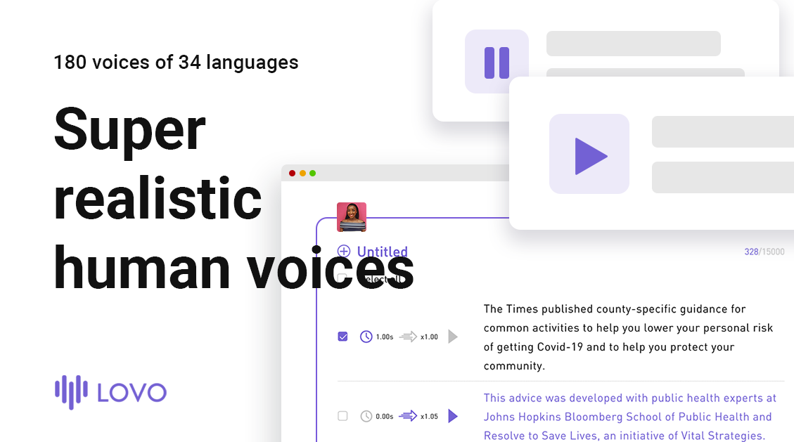 LOVO AI is a next-generation AI Voiceover & Text to Speech Platform that offers a library of over 180 human-like voices in 33 languages. It features authentic voices with true human emotions and custom voices created using voice cloning technology. LOVO AI also offers a DIY AI Voiceover Platform and Voiceover API, allowing developers to get started in 5 minutes to integrate world-class text-to-speech technology into their products.
