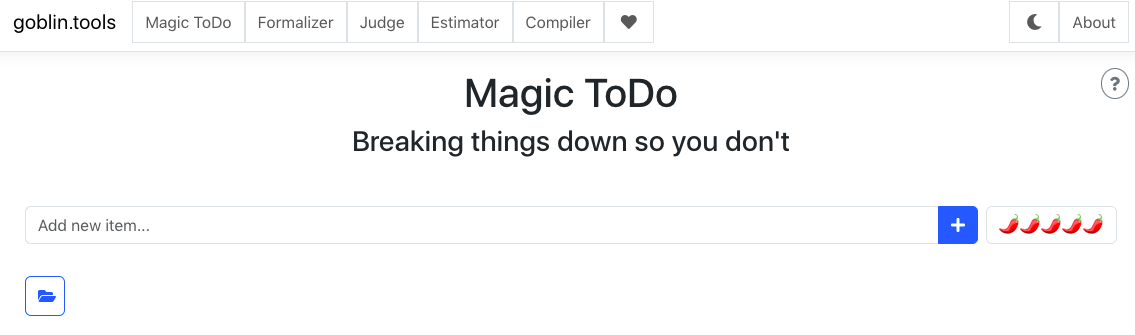 Magic ToDo is a tool that helps to break down complex tasks into manageable steps. It provides a standard to-do list with the added functionality of assigning a "spiciness level" to tasks, depending on how difficult or stressful the user finds them. It also allows users to filter their list by category and rearrange items by dragging the icon on the left. Additionally, it allows users to export their to-do list to a Todoist template or an iCal file.