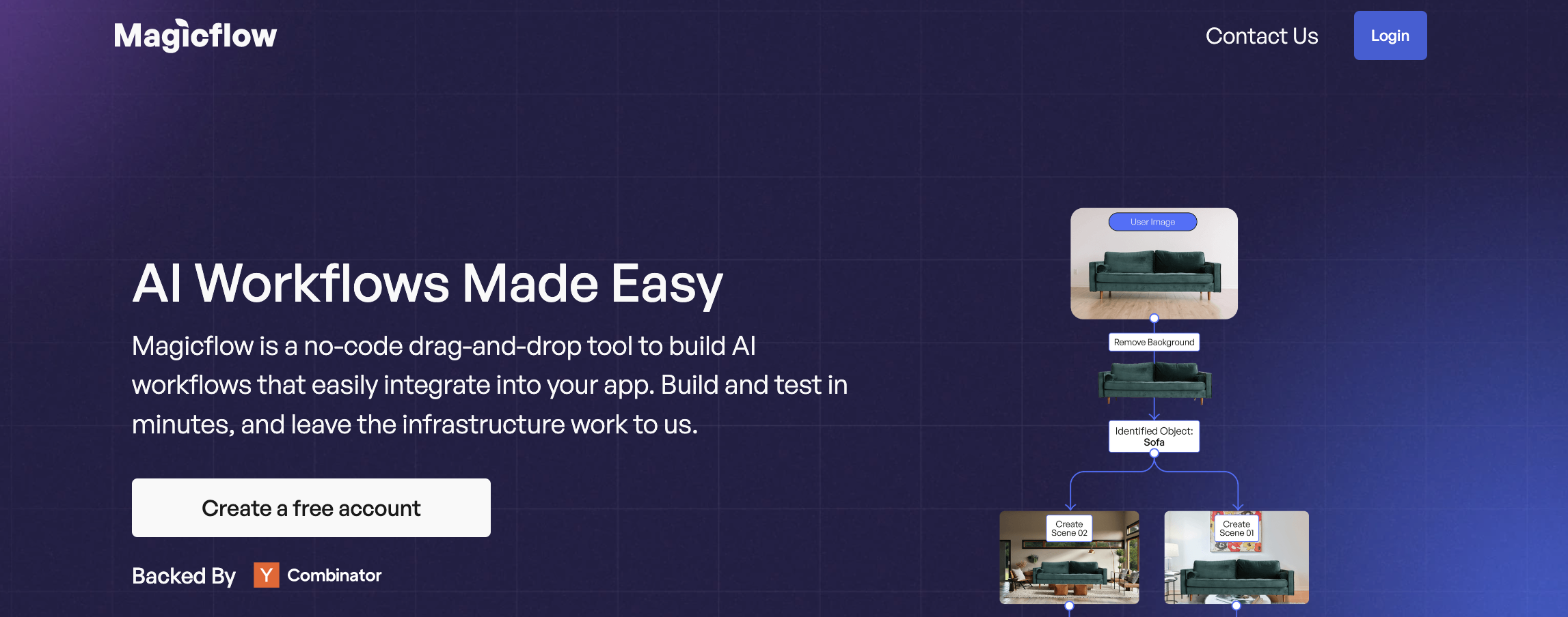 Magicflow is a no-code drag-and-drop tool to create AI workflows that easily integrate into an app. It allows users to build and test AI models in minutes, and optimize them for production in order to make them faster and cheaper. It also provides an API call to use the workflows in an app.