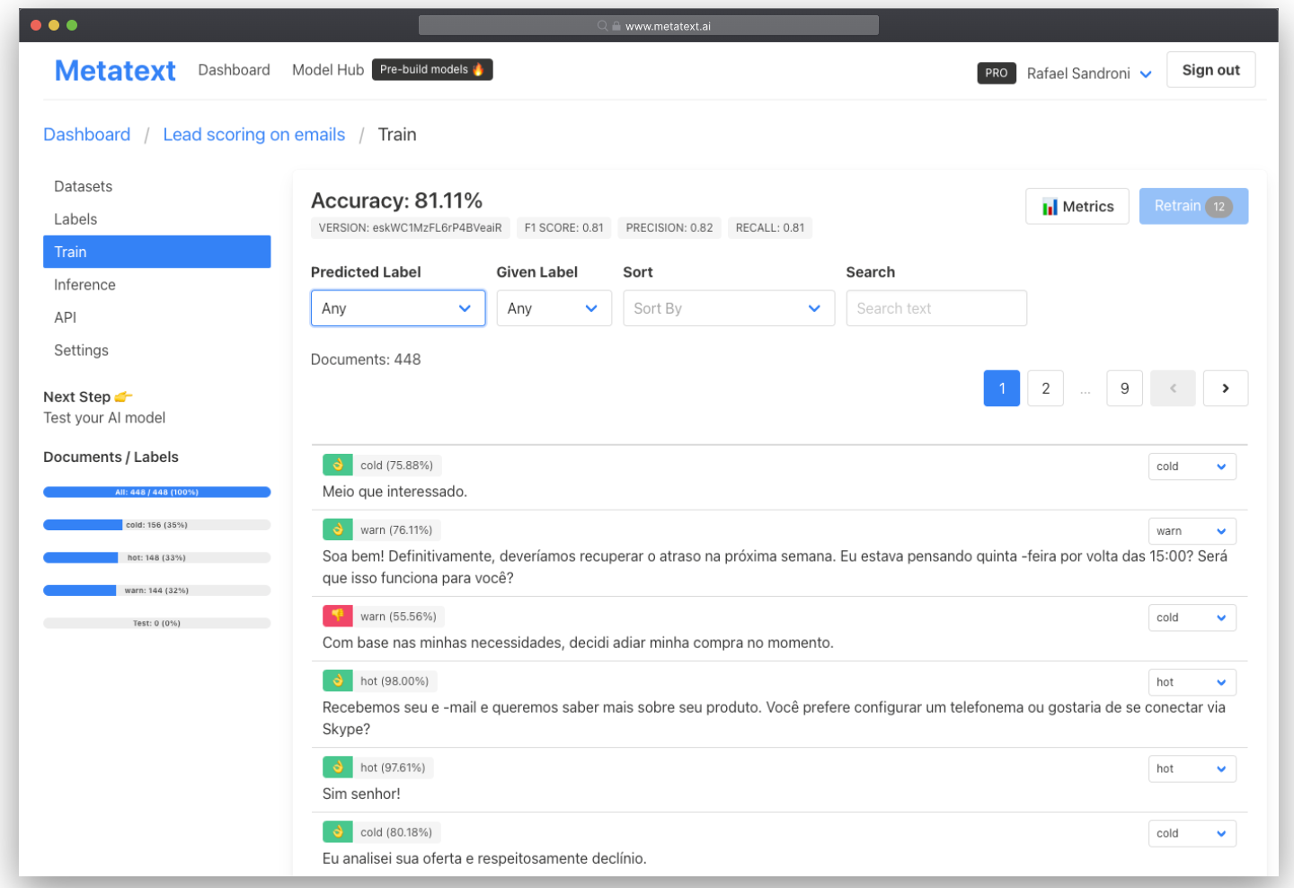 Metatext enables everyone to create Language AI models without hiring or being a ML, Data Science and MLOps expert. Automate complex workflows with few steps. Create a project, upload your data, and let our intuitive UI and APIs do all the heavy work.