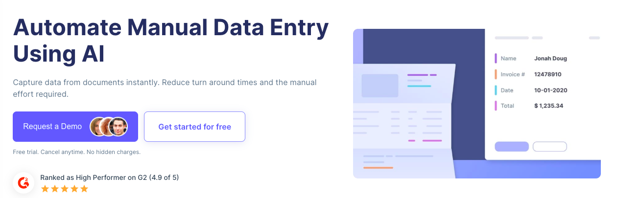 Nanonets is a data automation tool that uses AI to read semi-structured documents and extract data from them. It can be used to reduce manual data entry, validate extracted data, and capture only the fields you need. It also features continuous learning which allows the AI to improve its accuracy over time as more documents are processed. It also offers workflow integration which allows users to seamlessly upload documents and export data, as well as GDPR compliant data extraction.