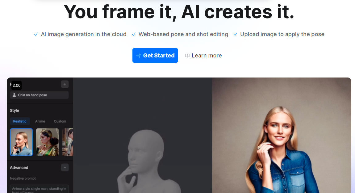 Plask Motion is a web-based motion capture service that allows users to upload images and apply poses using AI image generation in the cloud. It also offers web-based pose and shot editing, allowing users to create realistic or anime-style images.