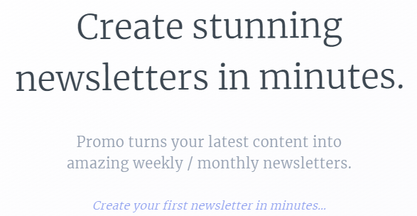 Promo.ai is a website generator that allows users to quickly and easily create stunning newsletters with custom branding. It uses a proprietary algorithm to select content that would entice readers, and offers five customizable templates that render perfectly across all major email clients. Promo.ai also offers analytics to track the success of newsletter campaigns and discover trends, and flexible pricing plans to suit any budget. Focused on Shopify users at the moment.