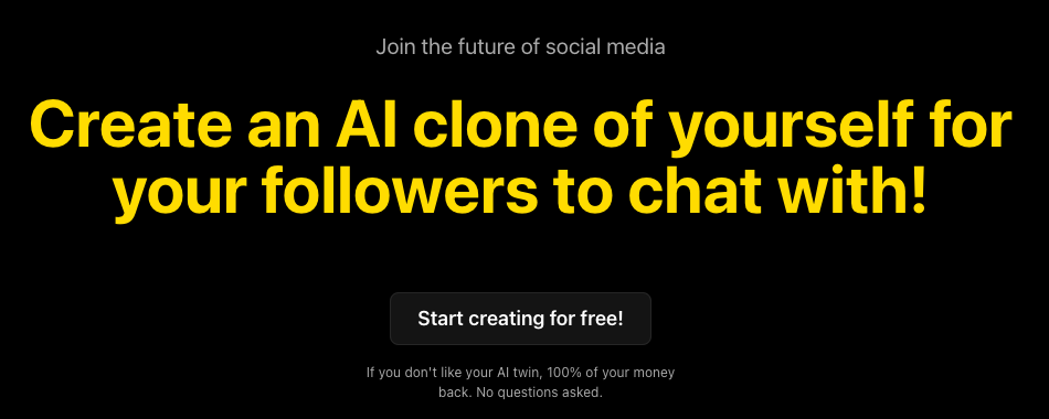 Twinning tool is a platform that allows users to create an AI clone of themselves that their followers can interact with. The user records a 5-15 minute audio and the AI twin is ready to be shared with their fans. The platform offers different pricing plans for influencers with different follower counts, and estimates the amount of money that the AI twin could potentially make. There is also a 100% money-back guarantee if the user is not satisfied with their AI twin.