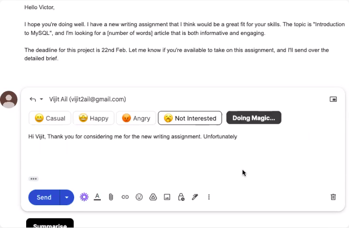 Victor AI is a Chrome extension that streamlines email communication by summarizing long email threads, generating responses to match your writing style, and freeing up more time for other tasks. It integrates into your Gmail client and uses GPT-3 technology to generate highly personalized, accurate, and relevant responses. It also supports multiple email accounts and does not store any of your data.